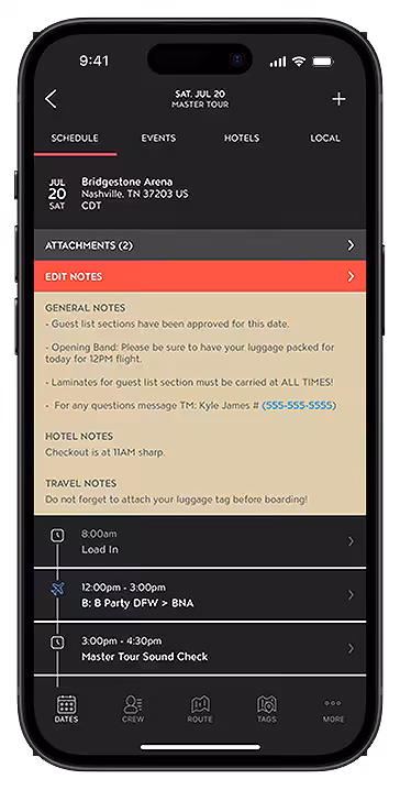 Para miembros de la tripulación, artistas, técnicos de backline, equipos de producción y personal de gira
